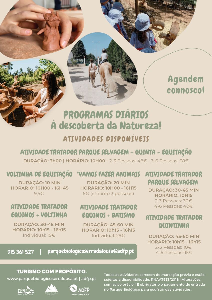 O parque dispõe de um vasto leque de atividades, promovidas individualmente ou em programas dirigidos a grupos e escolas adequando-as às várias preferências e/ou objetivos.